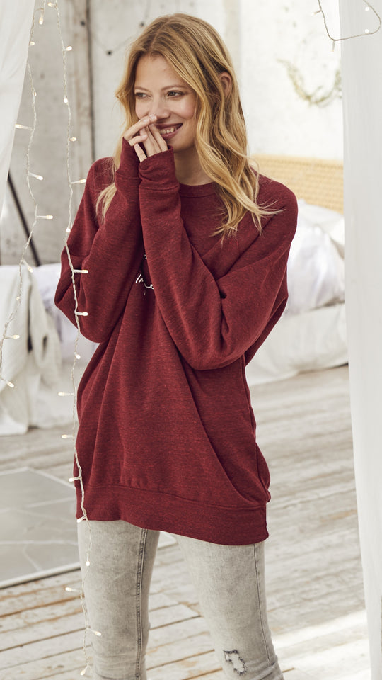 Introducing our most relaxed sweater so far! The coziest jumper you will ever own! Layer them up, or snuggle in on the sofa - guaranteed to be a year round fave. Perfect for gym days, school runs and movie nights or throwing on when the sun goes down:)