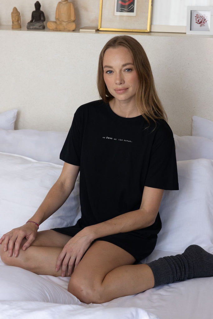 Our Bed Tee is the perfect tee, not only is it 100% cotton for a peaceful night sleep, it also has a flattering curved hem and longer length which works for all sizes.