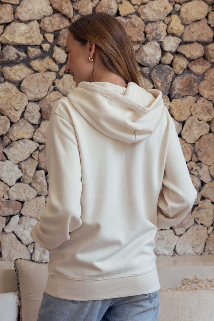 Designed for those who value comfort with a conscience, this timeless piece features a cosy double-lined hood for ultimate warmth and kangaroo pocket, handy for your little essentials.