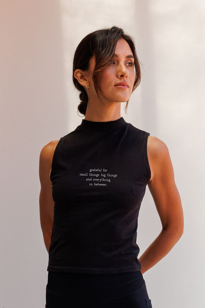 Designed to hold you with quiet strength, the Align Vest blends soft structure and elevated minimalism. Crafted in a soft-stretch cotton jersey with a clean funnel neckline, it’s the perfect layering piece for breathwork, slow mornings, or stepping out with intention.