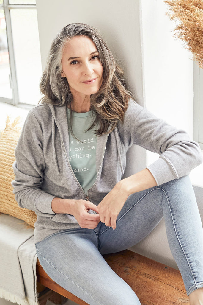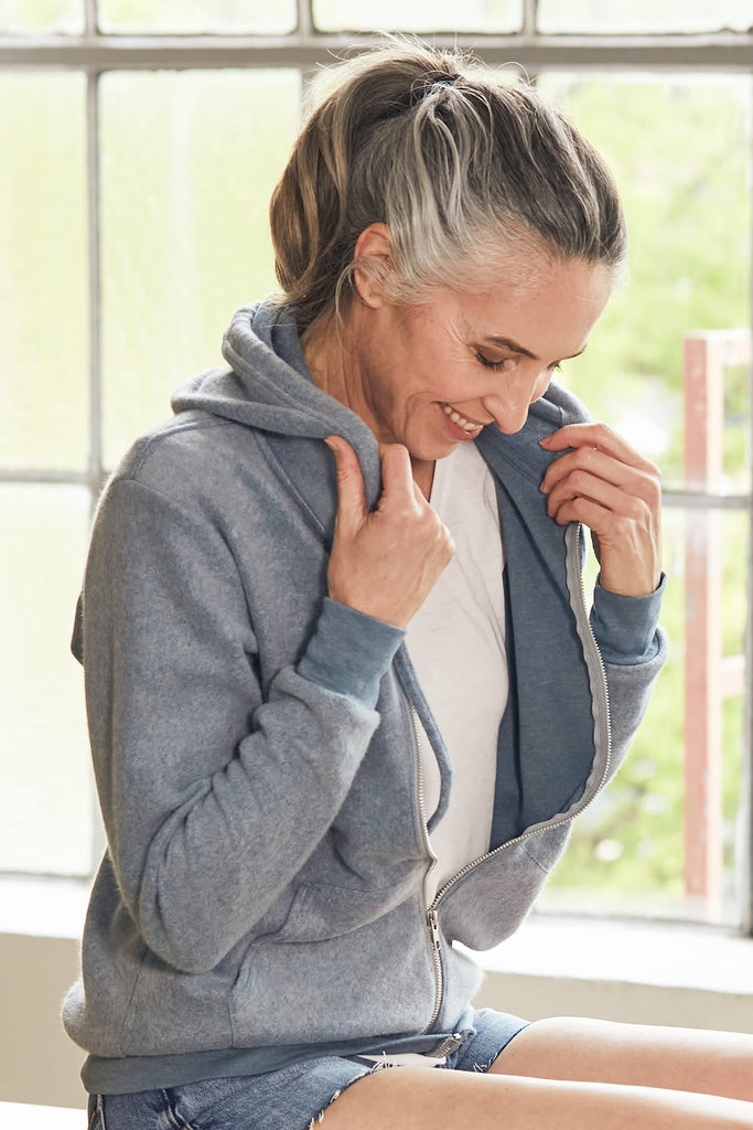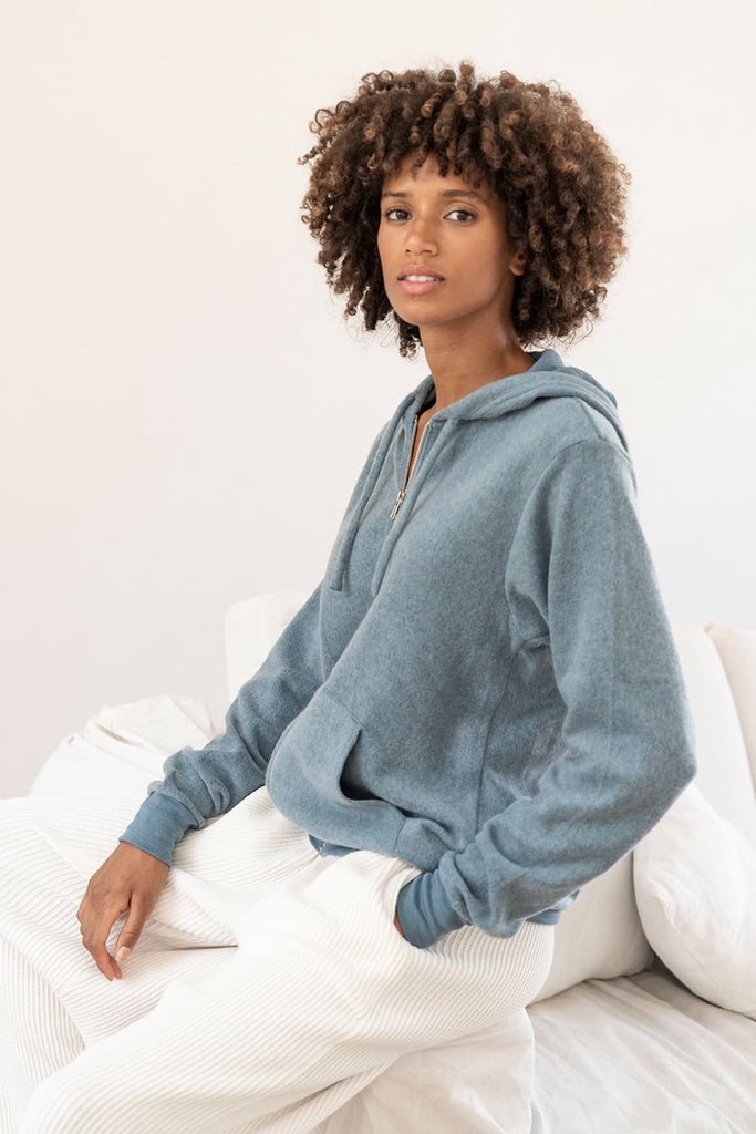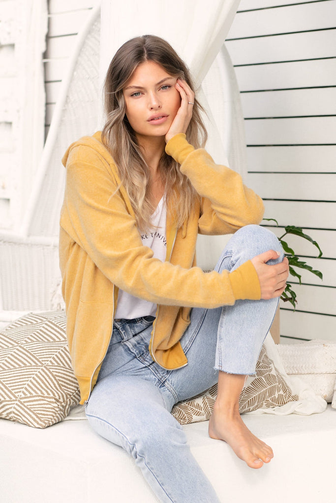 This sueded fleece hoodie is back! We think it's perfect for layering, a cool evening out, or even just lounging around in your favourite spot at home.