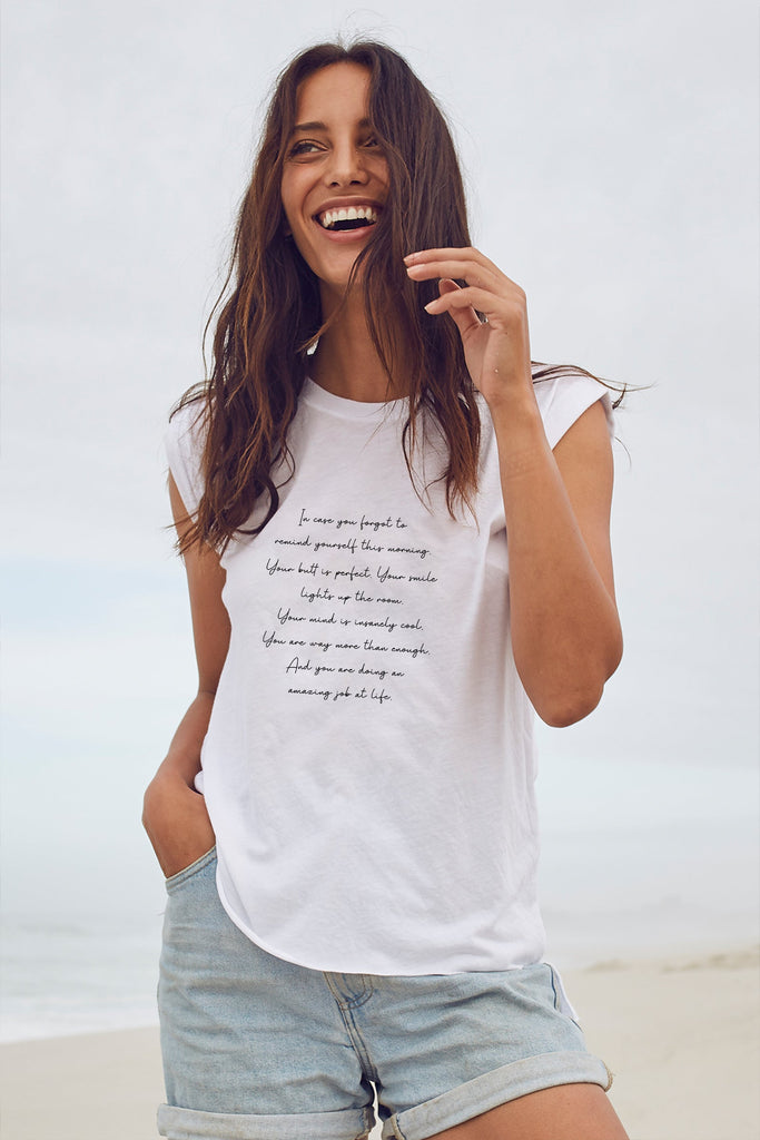 In case you forgot to remind yourself this morning. Your butt is perfect. Your smile lights up the room. Your mind is insanely cool. You are way more than enough. And you are doing an amazing job at life.