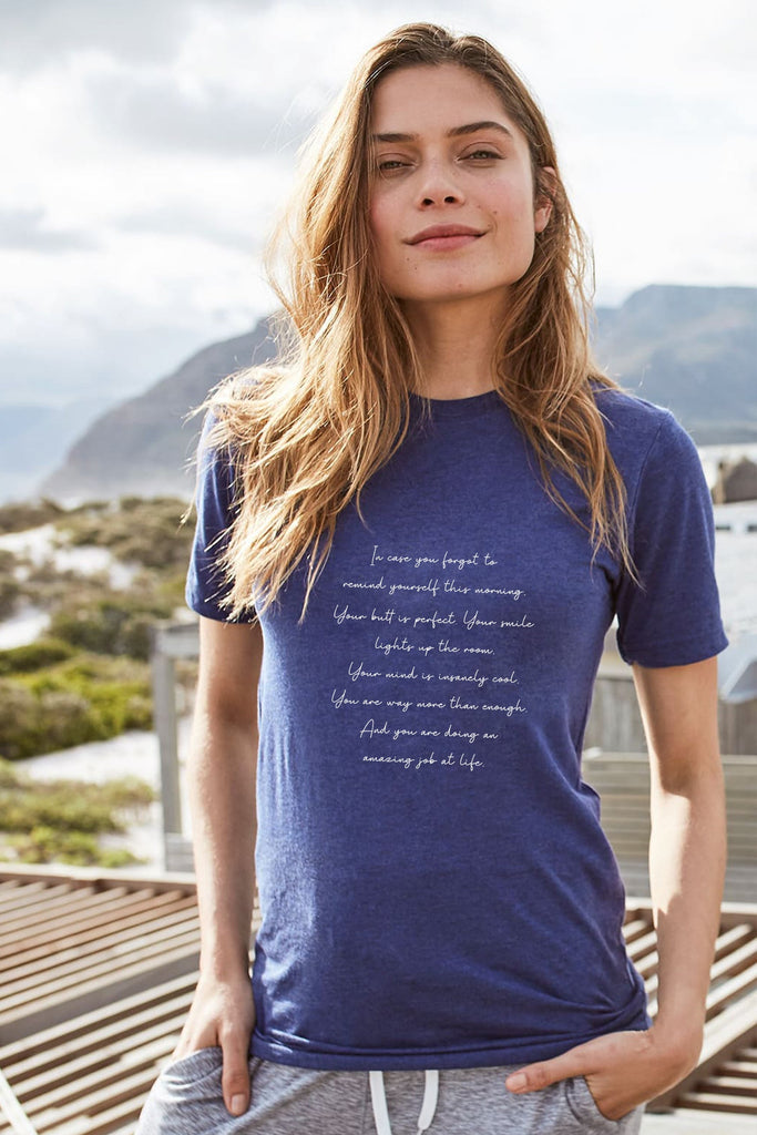 In case you forgot to remind yourself this morning. Your butt is perfect. Your smile lights up the room. Your mind is insanely cool. You are way more than enough. And you are doing an amazing job at life