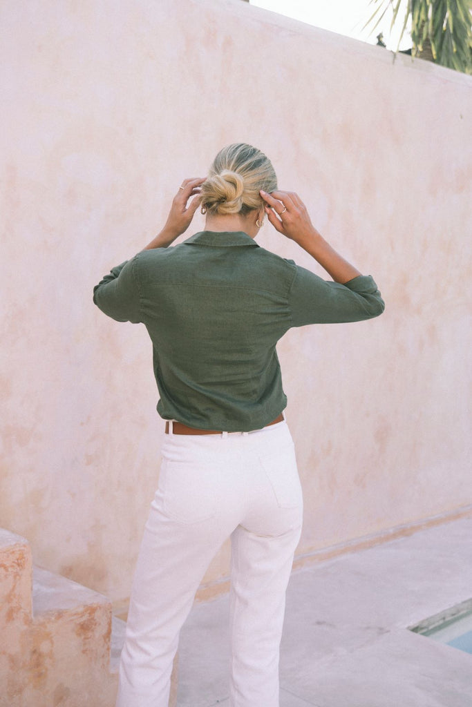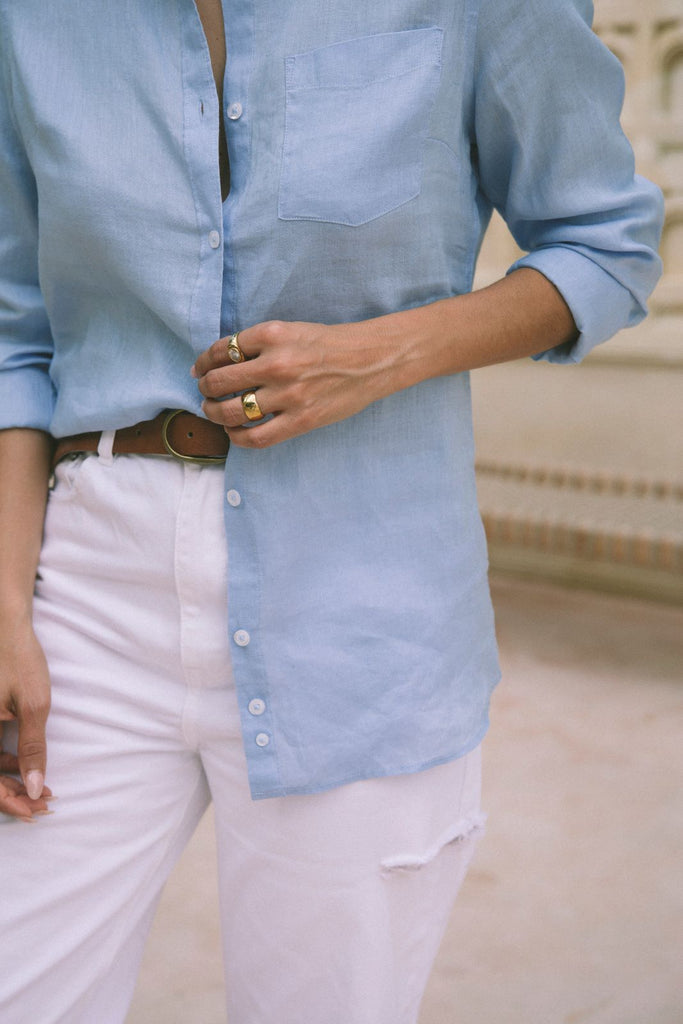 The Island Linen Shirt is the perfect blend of classic and modern style. Its timeless cut features pearlised buttons and two-button adjustable cuffs. Pair with denim for a relaxed summer beach look, take inspiration from our gorgeous shoot!